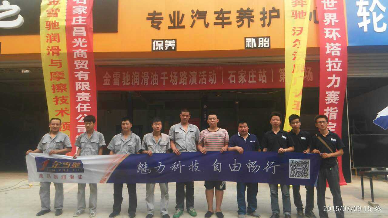 2015年7月8-10日,為期三天的“金雪馳潤滑油‘千場路演計劃’十萬人品質(zhì)見證之旅”轉(zhuǎn)戰(zhàn)河北,在石家莊市隆重拉開帷幕,本次路演主題為“感恩回饋——金雪馳買油送油(買機(jī)油送發(fā)動機(jī)清洗油),活動現(xiàn)場還送免費洗車服...