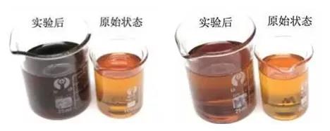 如圖所示,25ml 半合成潤滑油在 300°C下加熱 40 分鐘后,顏色變化較大,變黑的程度均非常明顯。似乎結(jié)果朝著預(yù)期的方向發(fā)展。