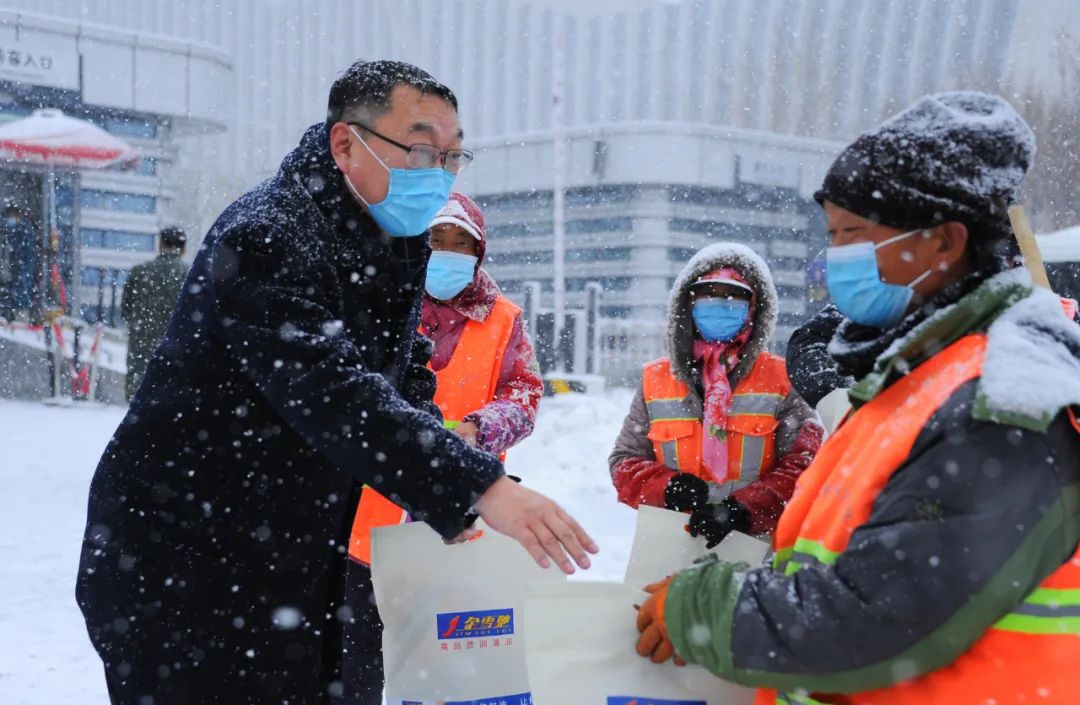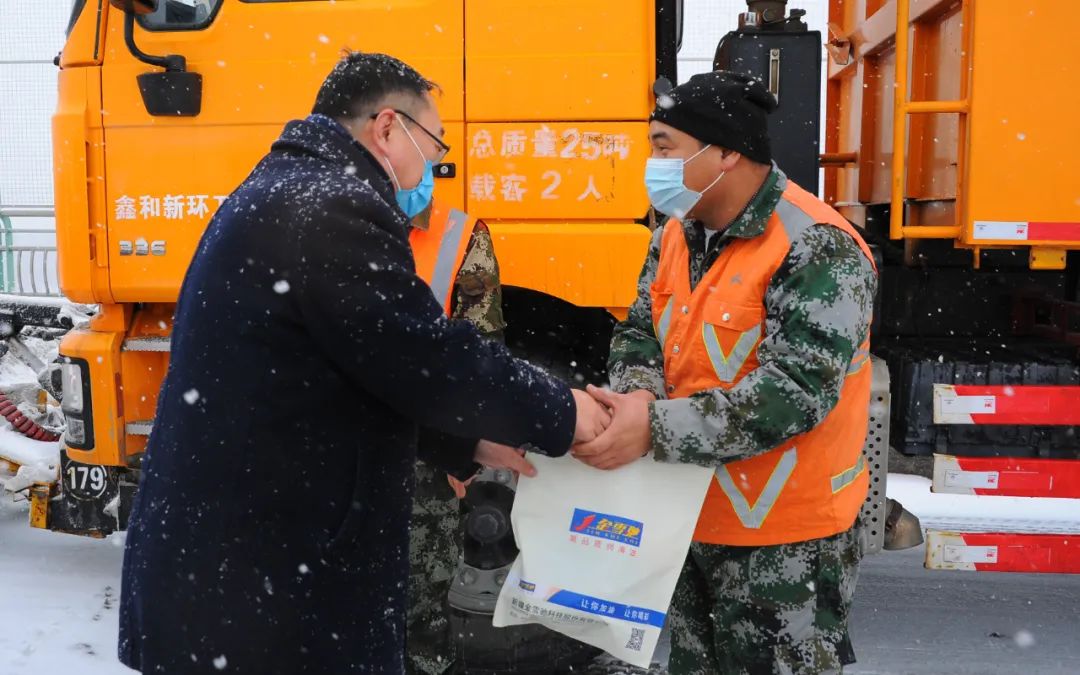 為表達(dá)對環(huán)衛(wèi)工人們的敬意,給他們送去一份溫暖和關(guān)愛,2021年12月9日,新疆金雪馳科技股份有限公司組織開展為環(huán)衛(wèi)工人送溫暖活動。新疆金雪馳科技股份有限公司副總經(jīng)理庫國強(qiáng)先生代表公司慰問在大雪中辛苦工作的環(huán)衛(wèi)工人,并送上精心準(zhǔn)備的勞保用品,讓環(huán)衛(wèi)工人們感受到冬日的“溫暖”。