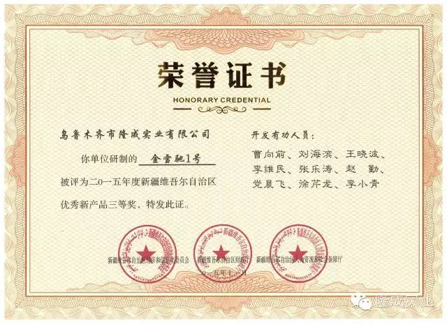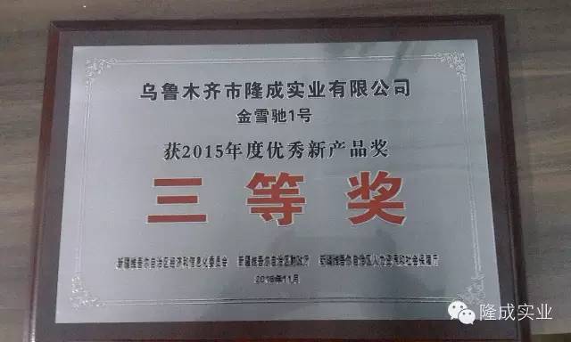 金雪馳1號榮獲“2015年度優(yōu)秀新產(chǎn)品獎三等獎”