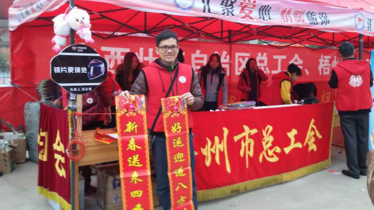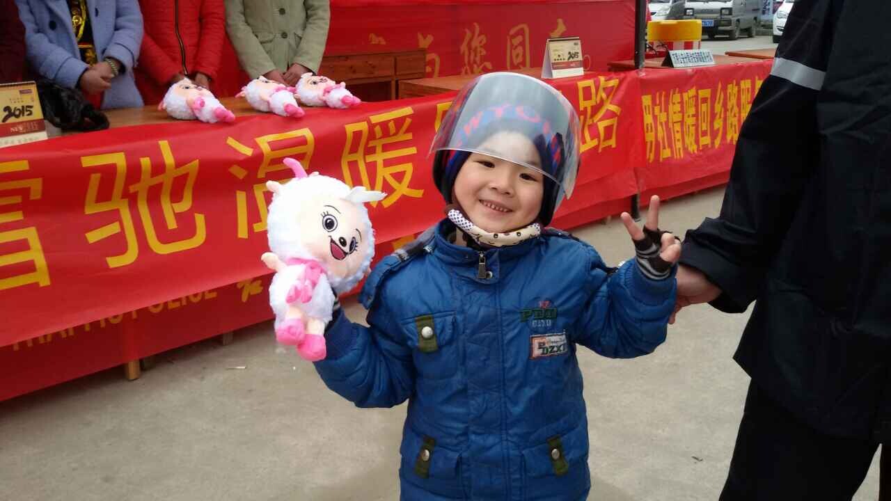 在人群中,記者看到,一群身穿紅色民族傳統(tǒng)服飾的志愿者顯得異常醒目。她們手拿羊年玩偶,逐一分發(fā)給跟隨父母騎車返鄉(xiāng)的兒童?!拔覀兪翘氐貜男陆s來(lái)這里,為返鄉(xiāng)的農(nóng)民工兄弟提供志愿服務(wù)的?!睘豸斈君R隆成實(shí)業(yè)有限公司市場(chǎng)部經(jīng)理張宇介紹,在出發(fā)前,他們還提前選購(gòu)了一批書包、保暖手套等禮品,希望讓“鐵騎大軍“感受到社會(huì)的關(guān)愛(ài)?!斑@是一件非常有意義的事情,我們希望盡自己的努力回饋社會(huì),明年有機(jī)會(huì)我們還會(huì)再來(lái)?!睆堄钫f(shuō)。