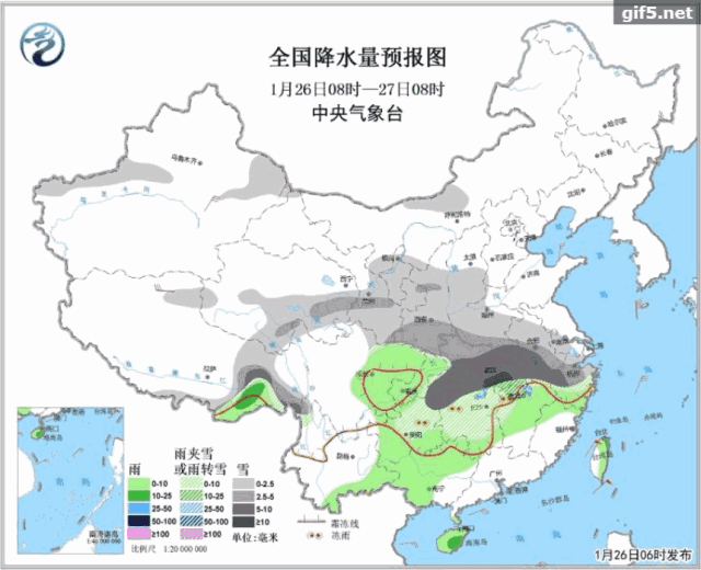 23日夜間至28日,甘肅東部、陜西、山西、河南、湖北、山東、安徽、江蘇、湖南、江西北部、浙江北部等地將先后出現(xiàn)中到大雪或雨夾雪,部分地區(qū)有暴雪。